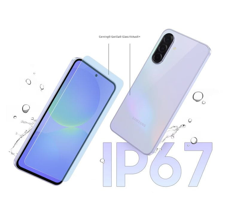 O vidro Corning Gorilla Glass Victus+ torna este modelo altamente resistente a choques e riscos. Possui também proteção IP67, o que o torna seguro contra salpicos e sujidade.